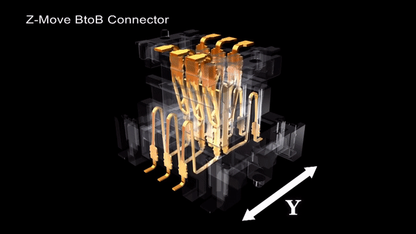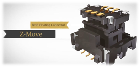 The Z-Move connector has the structure that allows the connector to move in Z-axis with a fixed contact point, while allowing it to float in the X and Y direction as well.